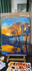 Hieronder zie je enkele schilderijen van cursisten, gemaakt tijdens de schilderlessen en workshops.